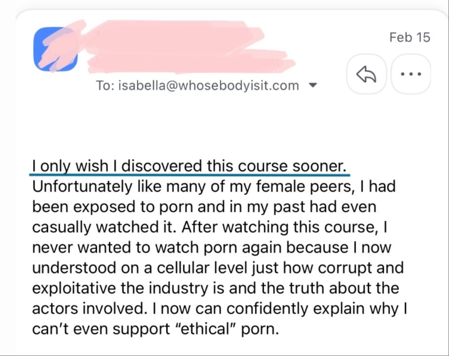✓ Comprehensive resource guide (never freeze up in a convo again (!!) with your partner or pro-porn friends when they tell you porn can be ethical 🧐)