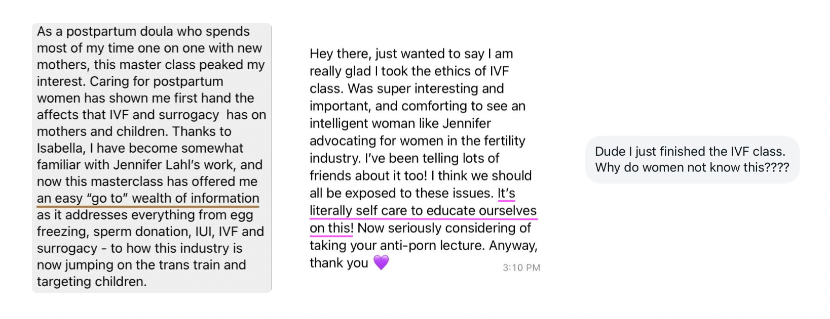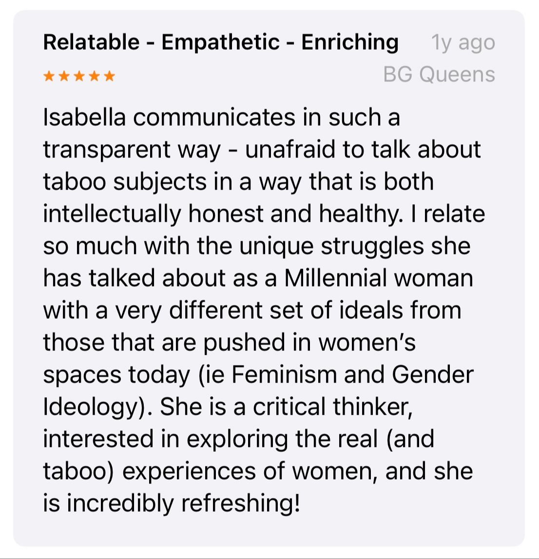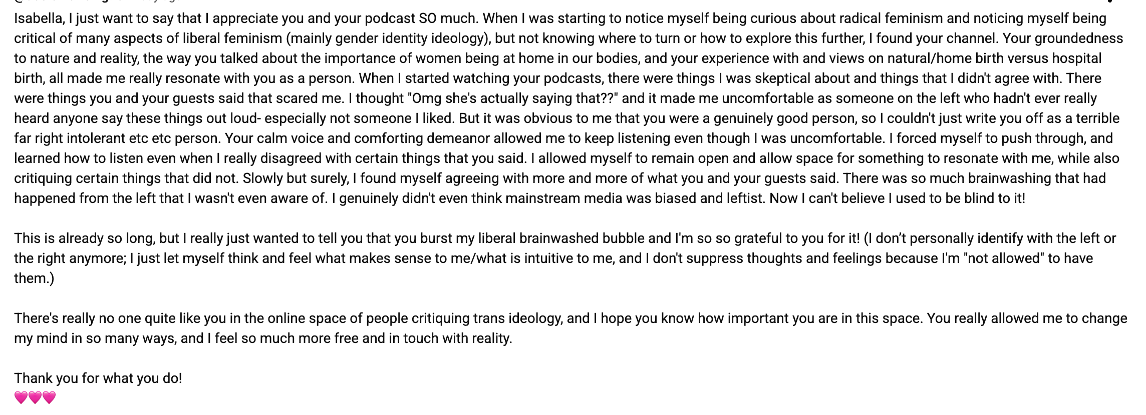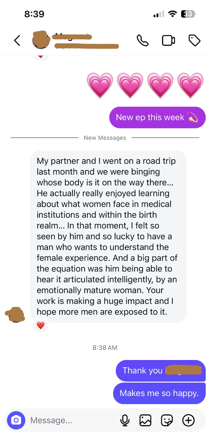 Below you'll find testimonials from women and men who’ve engaged with my work through 1:1 sessions, classes, and the Whose Body Is It podcast. These are not promises (!!) but raw accounts of personal transformation.Â
